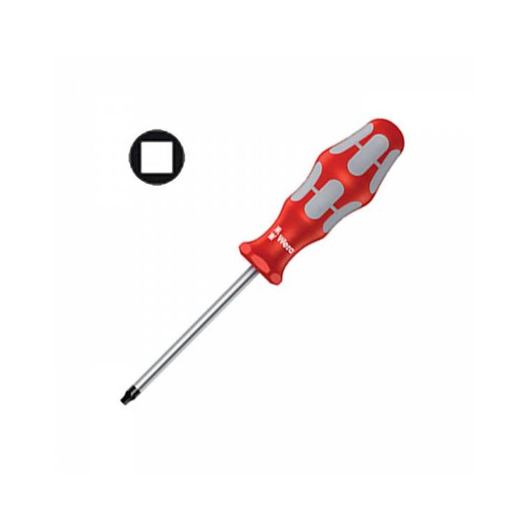 Square or Robertson screwdriver has a square-shaped tip designed to fit square socket screws, reducing cam-out and improving torque transfer. It provides a secure grip, ideal for woodworking and construction tasks. Features include hardened steel tips, ergonomic cushioned handles, and magnetic tips for easy screw holding. Typical shank length is around 4 inches (100-125mm), with overall length about 8.5 inches (216mm). Many models meet ASME and ISO standards.