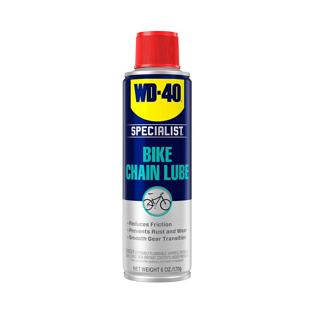 WD-40 Specialist Bike Chain Lube is an all-conditions aerosol lubricant for bicycles, protecting chains in wet, dry, or varying weather. Prevents squeaks, extends chain life with corrosion inhibitors; no wax residue buildup. Spray on chain above cassette, backpedal to apply, wipe excess.