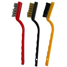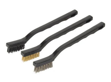 Wire brushes feature stiff metal bristles (steel, stainless steel, brass) in crimped, knotted, or straight configurations for rust removal, weld cleaning, deburring, and surface prep on metal, wood, or concrete. Hand-held scratch types suit light tasks; cup/wheel variants attach to grinders/drills for heavy-duty use (0.004-0.032″ wire diameter). They polish without altering workpiece shape, ideal for welding and automotive restoration.